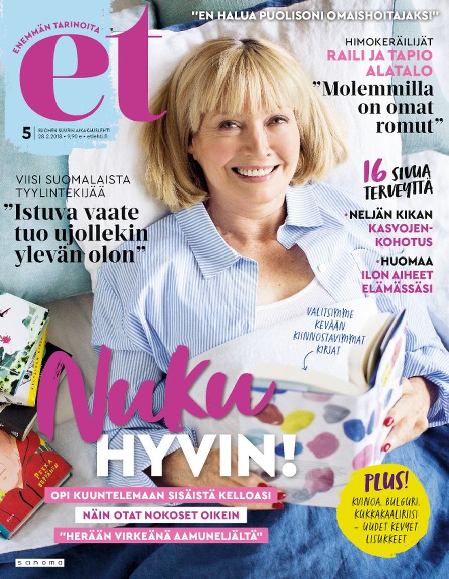 Vuoden viidennessä ET-lehden numerossa pohditaan nukkumista. Opi kuuntelemaan sisäistä kelloasi ja lue, miten nokoset otetaan oikein. Lehdessä on tuttuun tapaan mukana 16 sivua asiaa terveydestä.