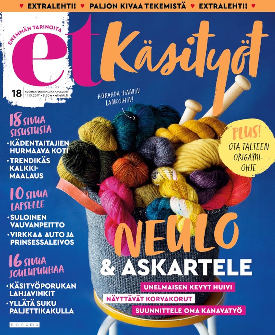 ET:n numero 18 on täynnä ihania käsitöitä. Numerossa neulotaan, virkataan, ommellaan ja askarrellaan.
