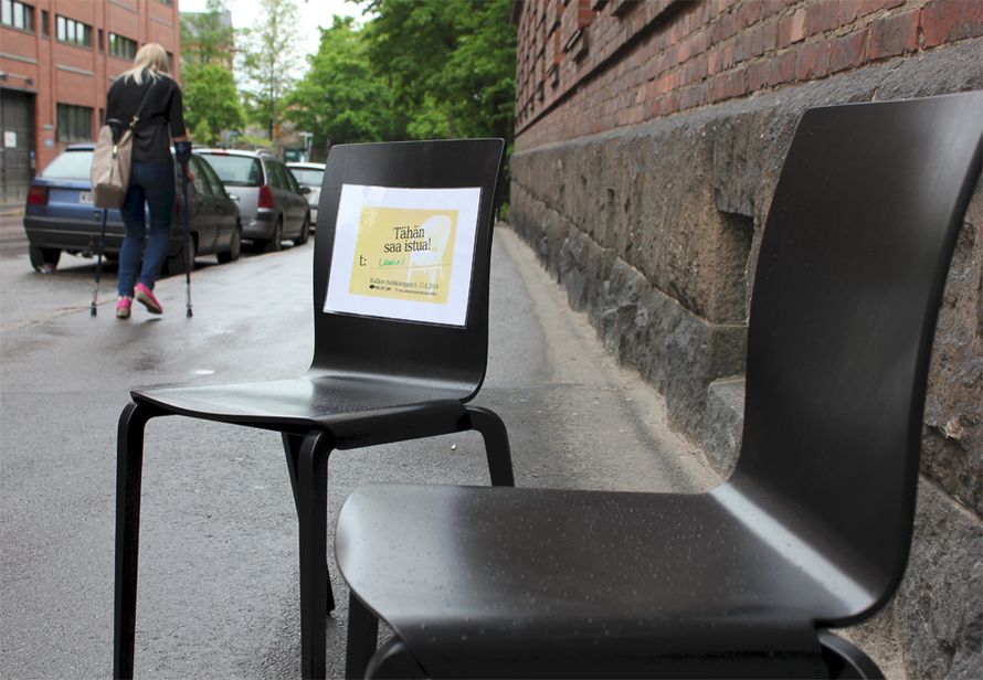 Helsingissä käynnistetään lajissaan ensimmäinen tuolikampanja. Nyt kansalaisilla on mahdollisuus laittaa tuoli kadulle ja tarjota istuin ohikulkijan levähdyspaikaksi.