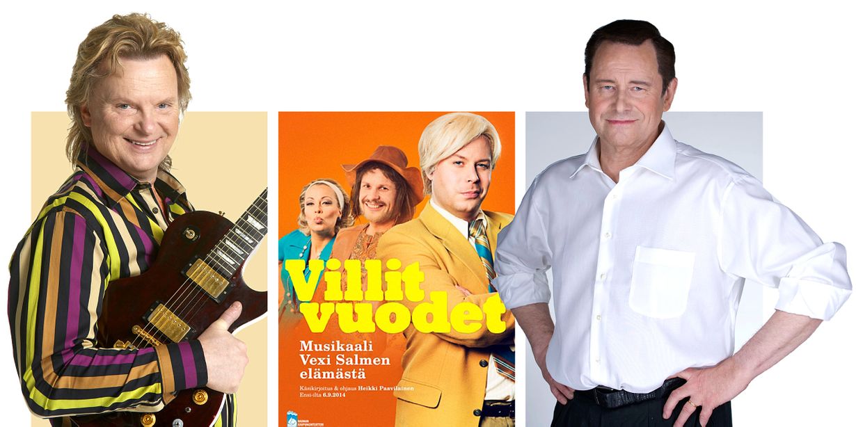 Vexi Salmen sanoituksia on levytetty yli 2 500 kappaletta. Villit vuodet -musikaali kertoo, kuinka hänestä sukeutui yksi valtakunnan arvostetuimmista sanoittajista. Mukana pyörii luonnollisesti Irwin Goodman, Vexin hyvä ystävä. Musikaalissa kuullaan 22 ikivihreää hittiä: Ei tippa tapa, Katson sineen taivaan, Viuhahdus...
