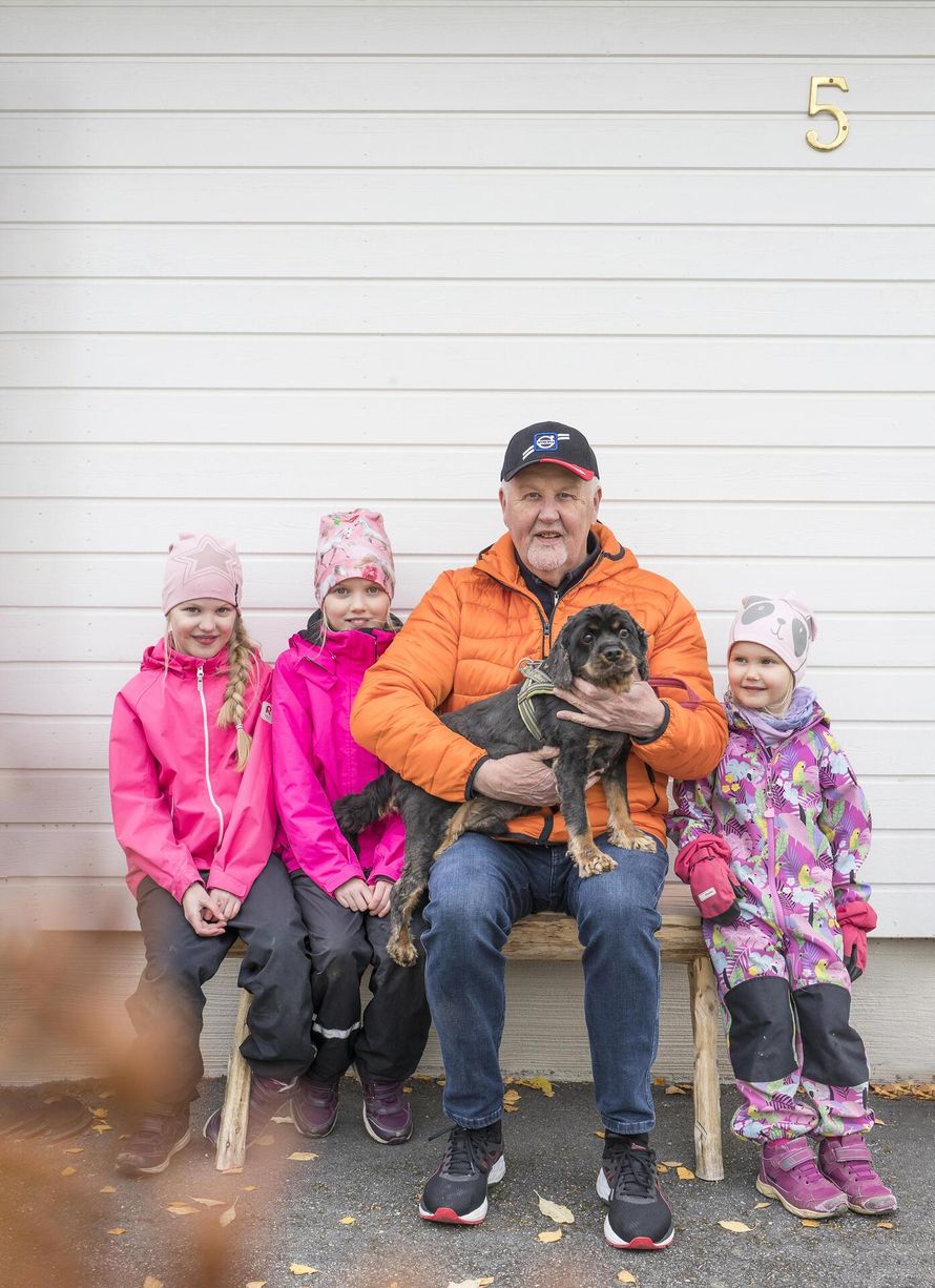 Hoidan ja kuljetan lapsenlapsiani tarpeen mukaan. Hoidan myös tyttäreni Maijan perheen Lenni-koiraa. Otin Lennin luokseni hoitoon, kun tyttären kolme poikaa olivat pieniä, ja koiran lenkittäminen kävi hänelle työlääksi.