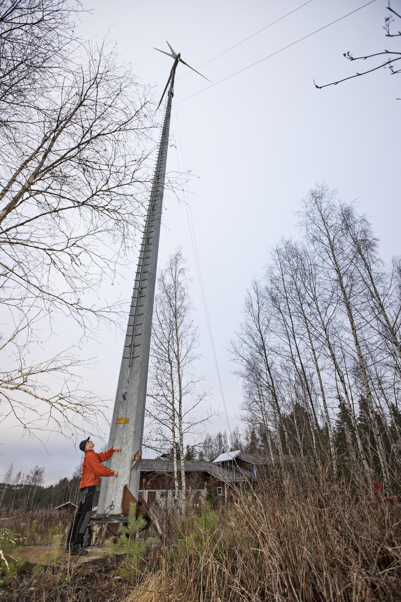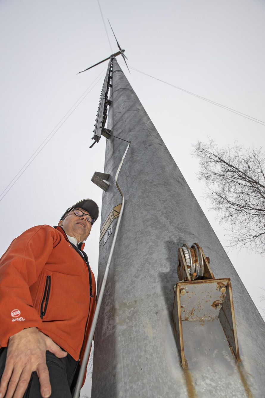 Tuulesta sähköä tuottava Risto Kivimäki, 65, säästää tuhansia euroja vuodessa.