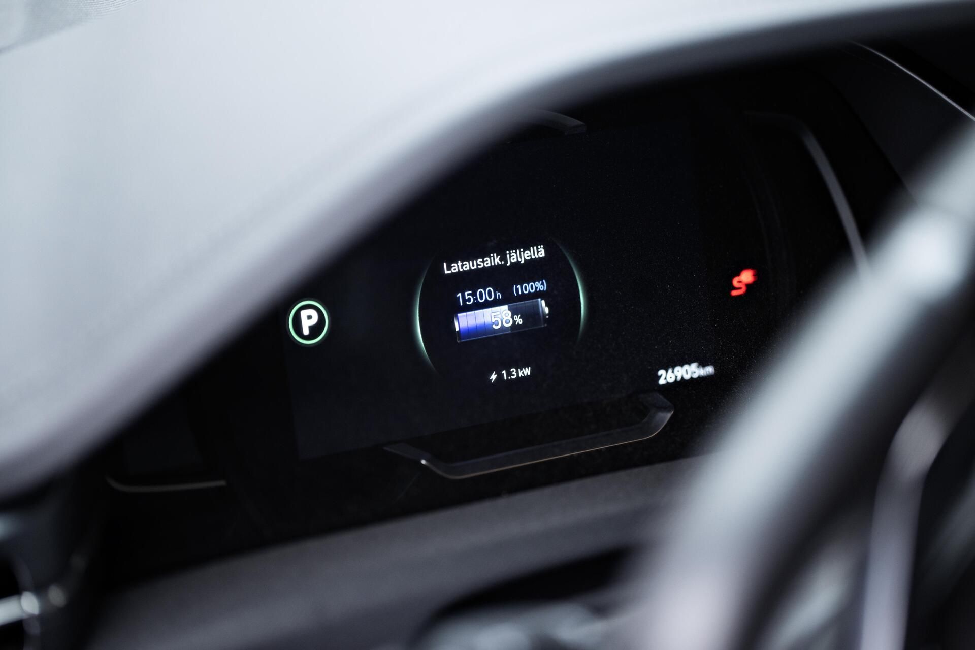 Kolmivaihelatauslaitteella latausteho voi nousta 11 kW:iin. Silloin isokin akku täyttyy yön aikana. Sadan kilometrin ajoon riittävä energia latautuu parissa tunnissa.
