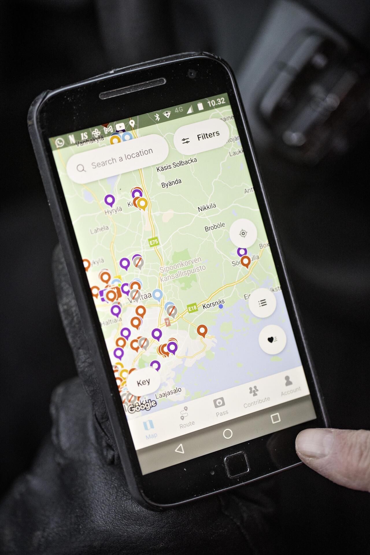 Pikalatausasemien sijainnin voi tarkistaa erilaisista kännykkäsovelluksista, joita sähköautoilijan puhelimeen kertyy helposti useita.