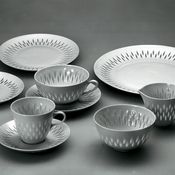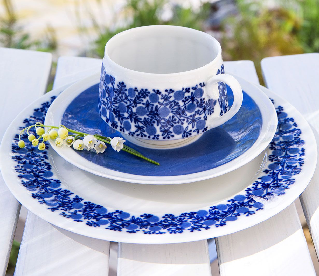 Rickhard Lindhin DG-malli ja Raija Uosikkisen Doria-koriste. Kuppi 23 euroa, kakkulautanen 12 euroa.