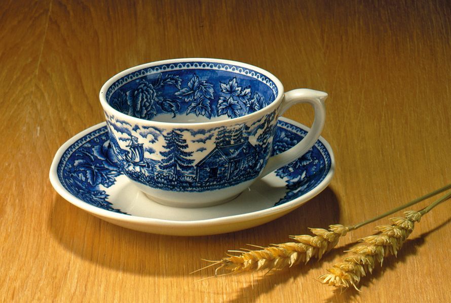 Lotta-yhdistykset ympäri Suomen tilasivat sotaa edeltävinä vuosian yhdistyksen logolla koristeltuja astioita. Hinta-arvio: 50–100 euroa.