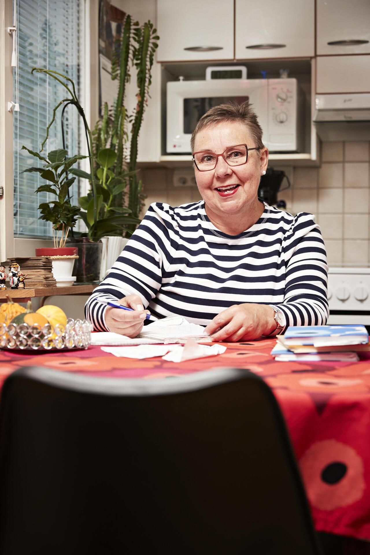 Kulujen kirjaamisesta tuli tapa, jota Varpu jatkaa edelleen. Merkinnät hän tekee aina kynällä paperiseen vihkoon.