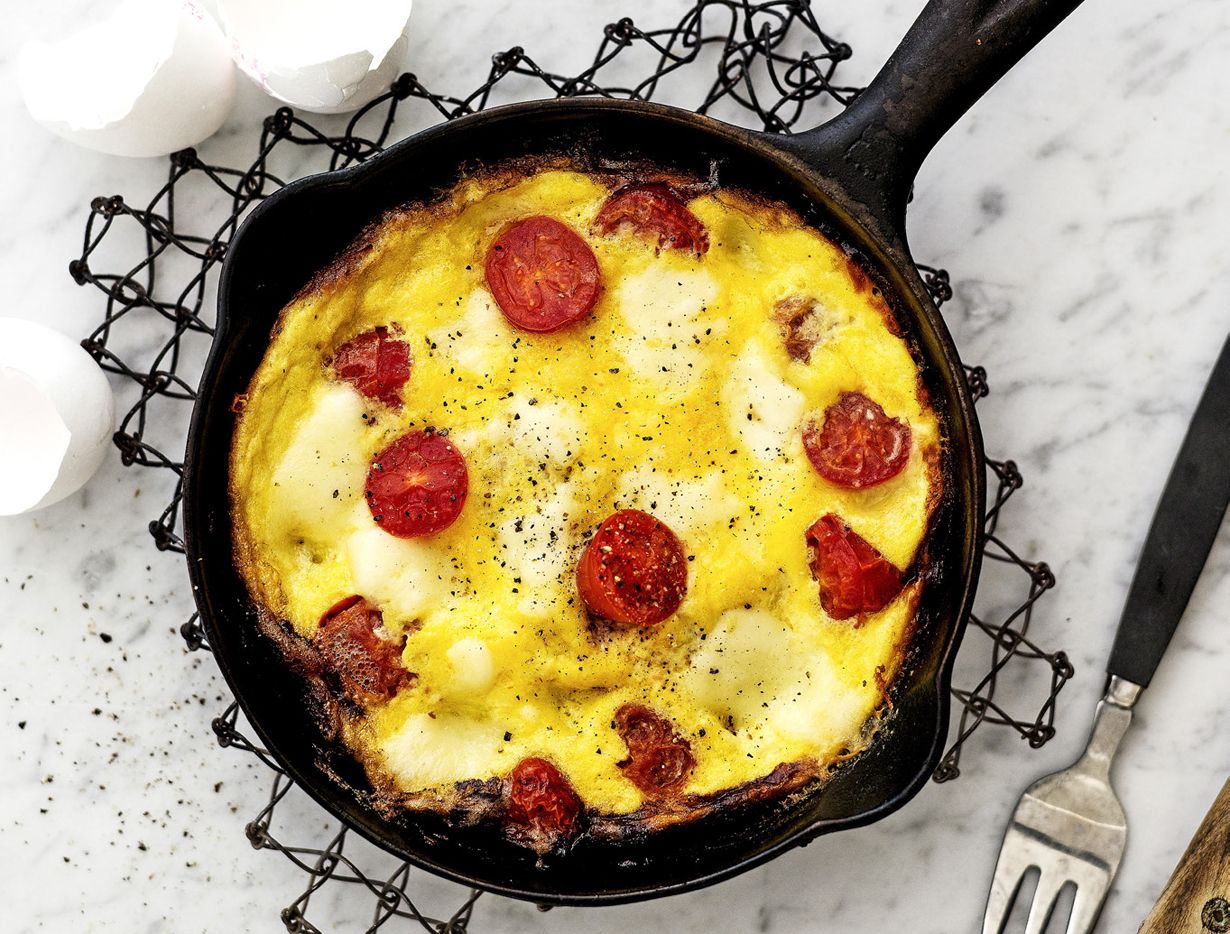 - Mozzarella-tomaattifrittata ja vihersalaatti.