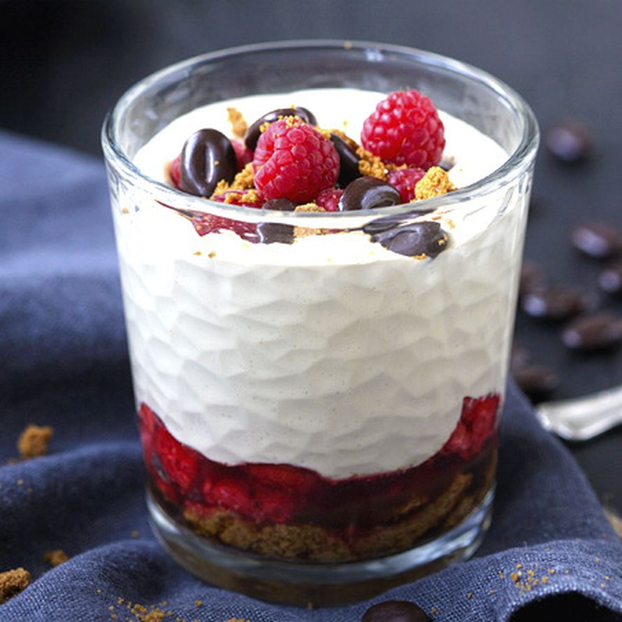 - Koristele annokset marjoilla, keksinmuruilla ja karamelleilla.