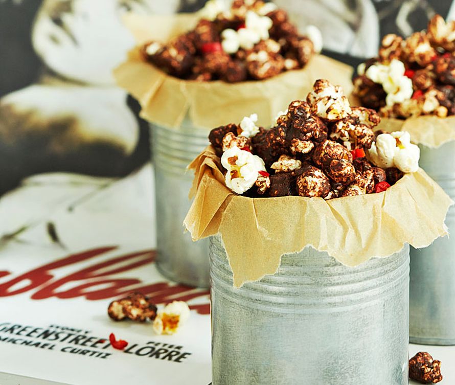 - Yhdistä jäähtyneet suklaapopcornit ja maustamattomat popcornit ja jaa tarjoiluastioihin.