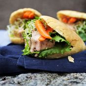 - Taputtele murekemassasta suorakaiteen muotoinen levy leivinpaperilla vuoratun uunipellin päälle. Levitä täyte taikinan keskelle. Nosta reunat kiinni ja ummista sauma yhteen kostutetuin sormin. Voitele pinta öljyllä.
