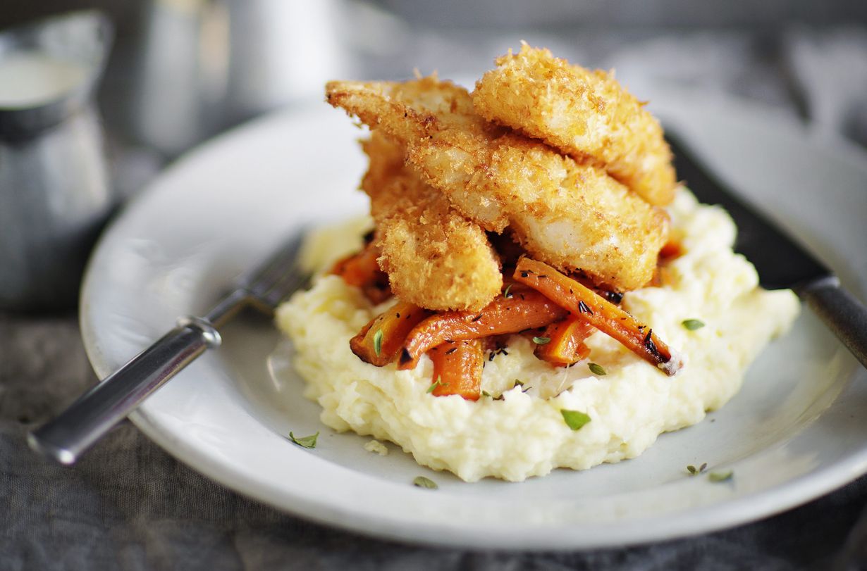 Friteeratut turskafileet maistuvat ihanalta piimämuusin kanssa.