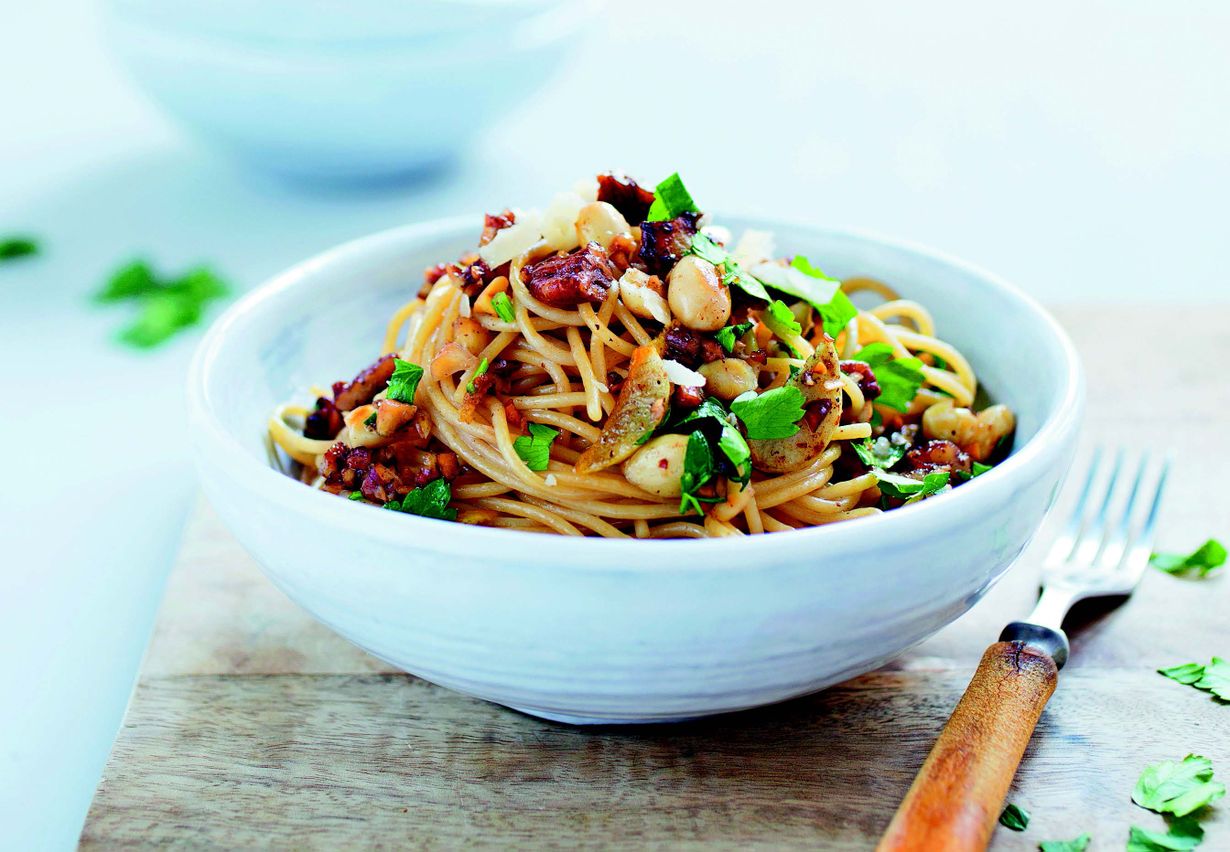 Täysjyväpastaa ja pähkinäkastike