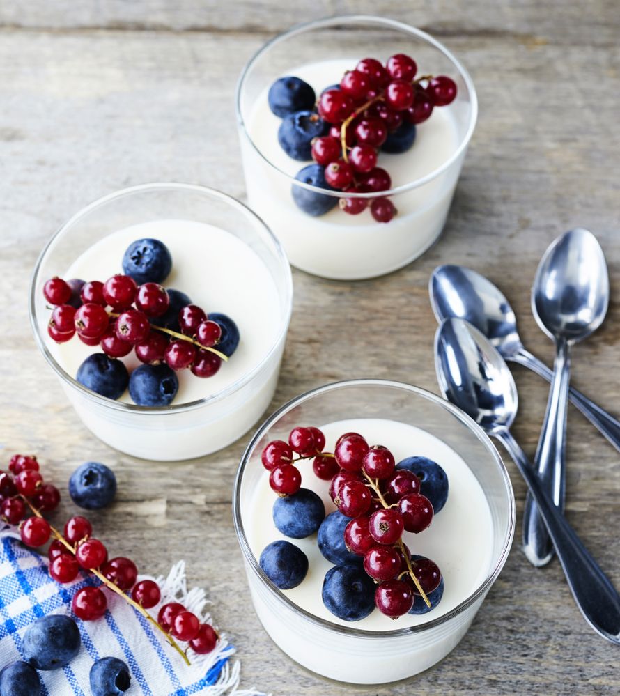 Makeat ja hapokkaat marjat ovat hyvä pari miedonmakuiselle piimähyytelölle.