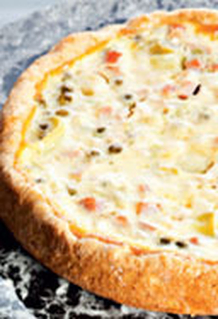 - Levitä sulaneet kasvikset, kuutioiksi leikattu kinkku ja hienonnettu persilja päälle. Mausta suolalla, pippurilla ja yrteillä.