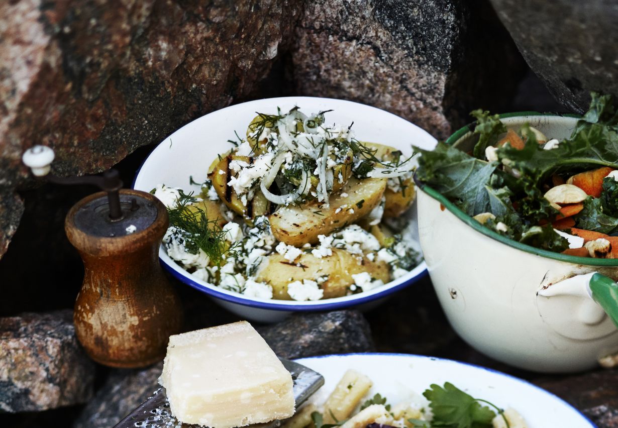 Kreikkalainen perunasalaatti maistuu grilliruokien kaverina