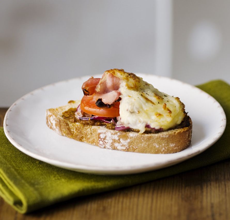 3. Lado täytteeksi vaikka tomaatti-viipaleita ja kinkkua. Rouhi pinnalle mustapippuria.