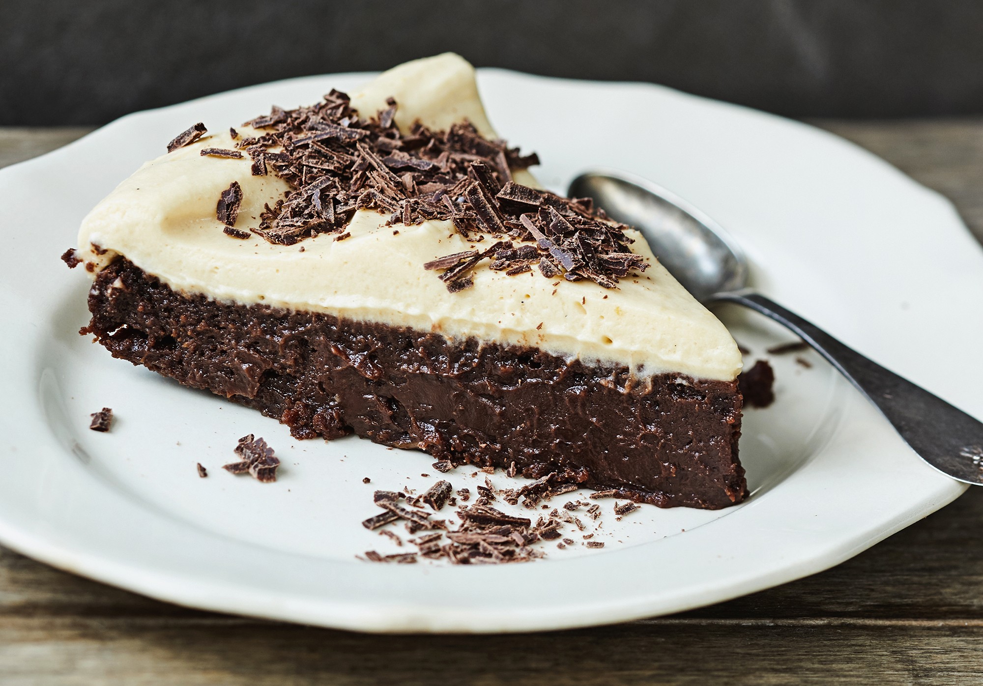 - Lisää suklaamassan joukkoon munat yksi kerrallaan sekoitellen. Lisää likööri. Kaada kakkutaikina vuokaan. Paista kakkua 40-50 minuuttia. Se saa jäädä keskeltä tutisevan tukevaksi. Jäähdytä ja nosta kakku jääkaappiin tekeytymään seuraavaksi päiväksi.
