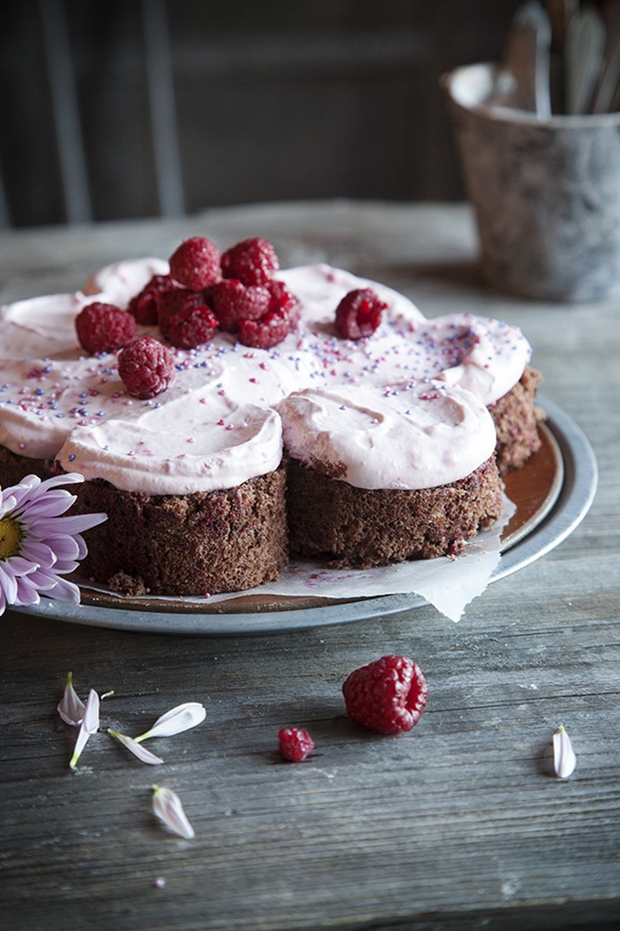 Tuttu kääretorttu taipuu helposti pikakakuksi. Punajuuri maustaa ja antaa väriä kukkakakkuun.