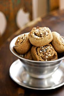 - Asettele kierteet pellille, ripottele pintaan vielä mantelirouhetta.