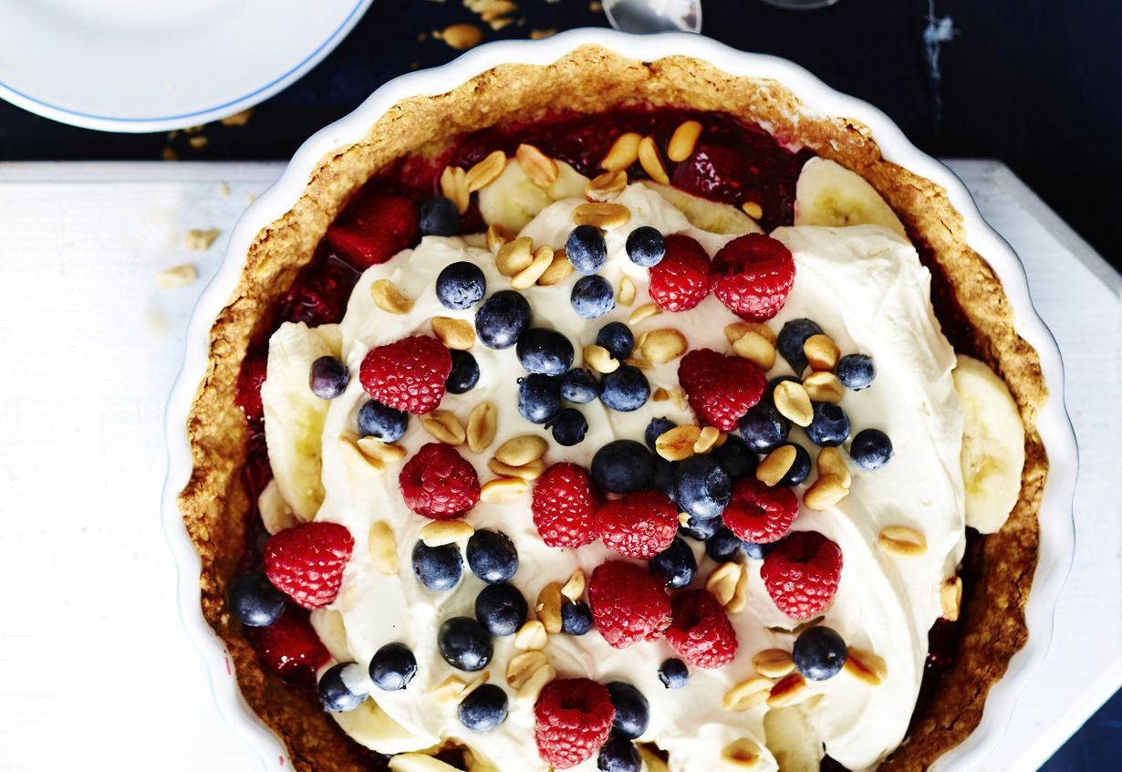 - Kokoa torttu. Levitä vadelmasoseen päälle banaaniviipaleet ja kinuskikerma. Anna makujen vetäytyä tunti ennen tarjoilua.