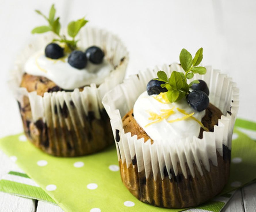 - Koristele jäähtyneet leivonnaiset vaniljarahkalla ja tuoreilla mustikoilla.