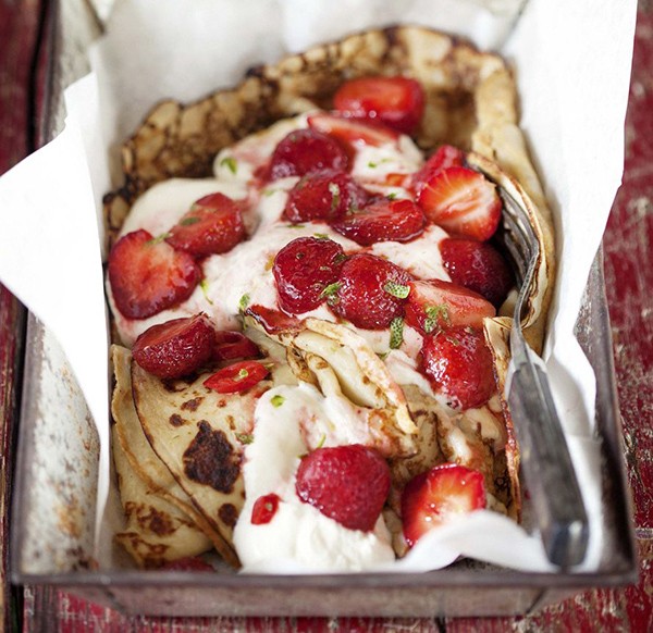Kesän ihanin herkku on muurinpohjalettu. Sen kanssa maistuu ranskankerma ja limellä ja chilillä terästetty mansikkasalsa. Katso resepti täältä.