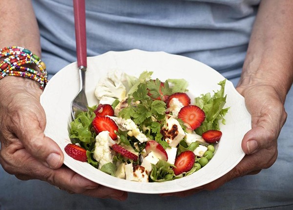 Mansikka ja leipäjuusto sopivat hienosti yhteen. Tuoreet mansikat pääsevät loistamaan tässä raikkaassa salaatissa. Katso resepti täältä.