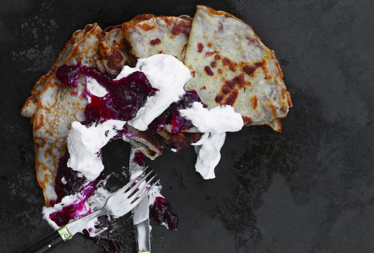 - Lisää muna ja suola taikinaan juuri ennen paistamista. Taikina ei saa olla liian sakeaa, koska silloin se ei leviä tarpeeksi ohuesti pannulle.