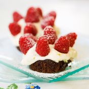 - Voitele irtopohjavuoka (halkaisijalta noin 25 cm) huolellisesti voilla. Kumoa taikina kakkuvuokaan. Paista kakkua 200-asteisen uunin keskitasolla noin puoli tuntia. Kakku saa jäädä keskeltä hieman kosteaksi. Irrota kakku vuuasta ja jäähdytä.