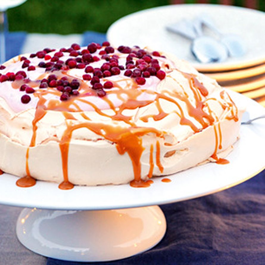 Herkuttele tällä ihanalla pavlovalla, jossa puolukat tuovat raikkaan maun.