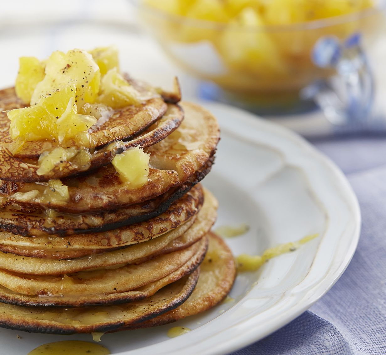 Sulata voi pannulla. Lisää joukkoon sokeri ja kardemumma. Kuumenna seosta noin 4 minuuttia. Lisää kuumalle pannulle appelsiinipalat ja inkivääri. Paista samalla sekoitellen 5 minuuttia. Tarjoa appelsiinisalaatti ohukaisten kanssa.