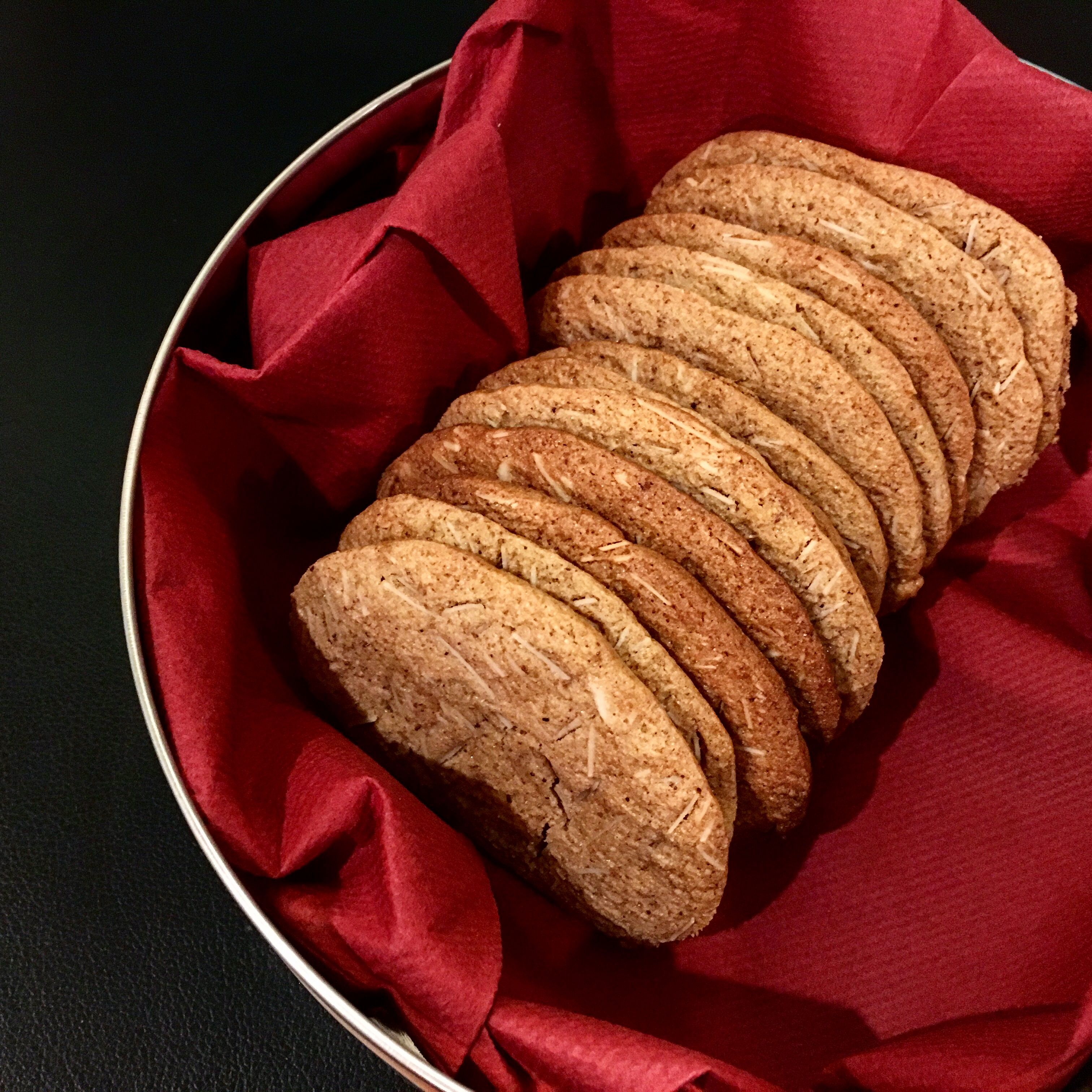 - Leikkaa kovettuneista pötköistä terävällä veitsellä ohuita siivuja. Laita siivut pellille leivinpaperin päälle ja paista niitä uunissa 190 asteessa (kiertoilmalla 165 asteessa) noin 7 minuutin ajan. Anna jäähtyä.