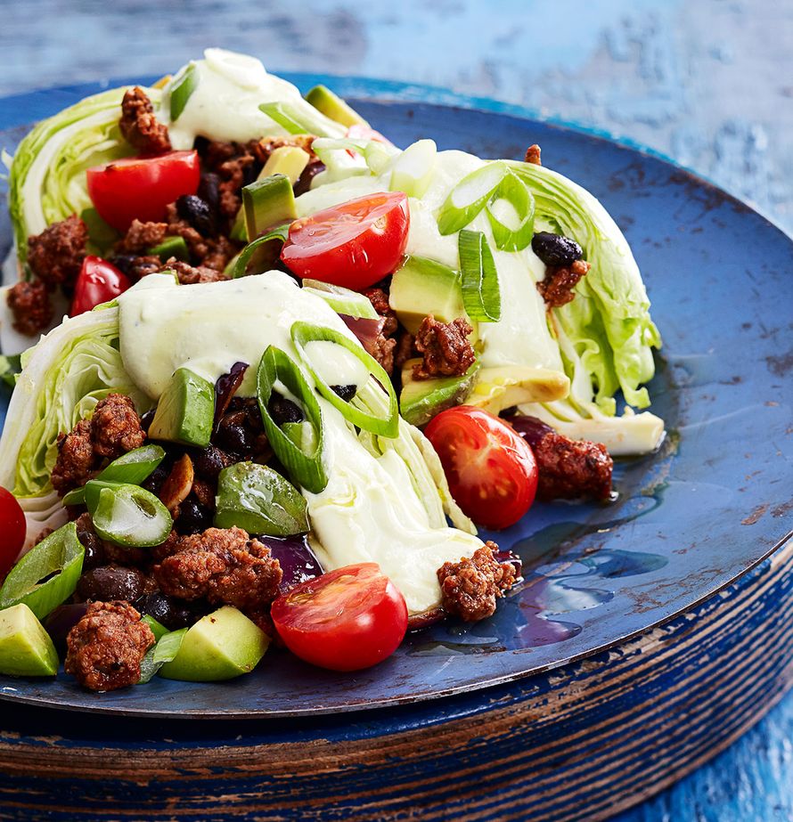 Muikeasti maustettu jauhelihasalaatti säikäyttää hurjemmankin nälän.
