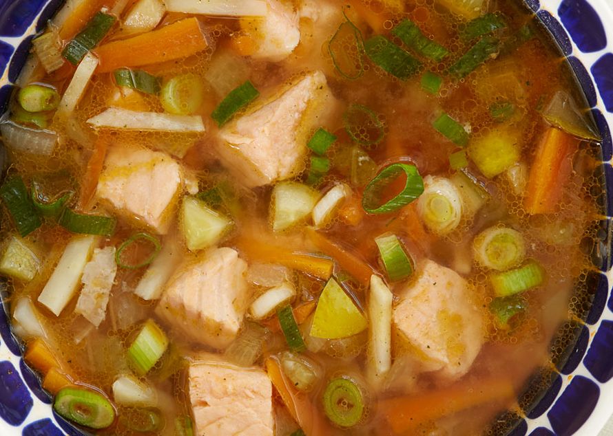 Kirkas lohikeitto ruisleivän kera on oivallinen, proteiinipitoinen lounas.