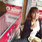 - Huuhtele ja kuivaa salaatit tarvittaessa ja revi ne tarjoiluvadille. Nypi sitruunamelissasta lehdet ja lisää ne salaatin sekaan.