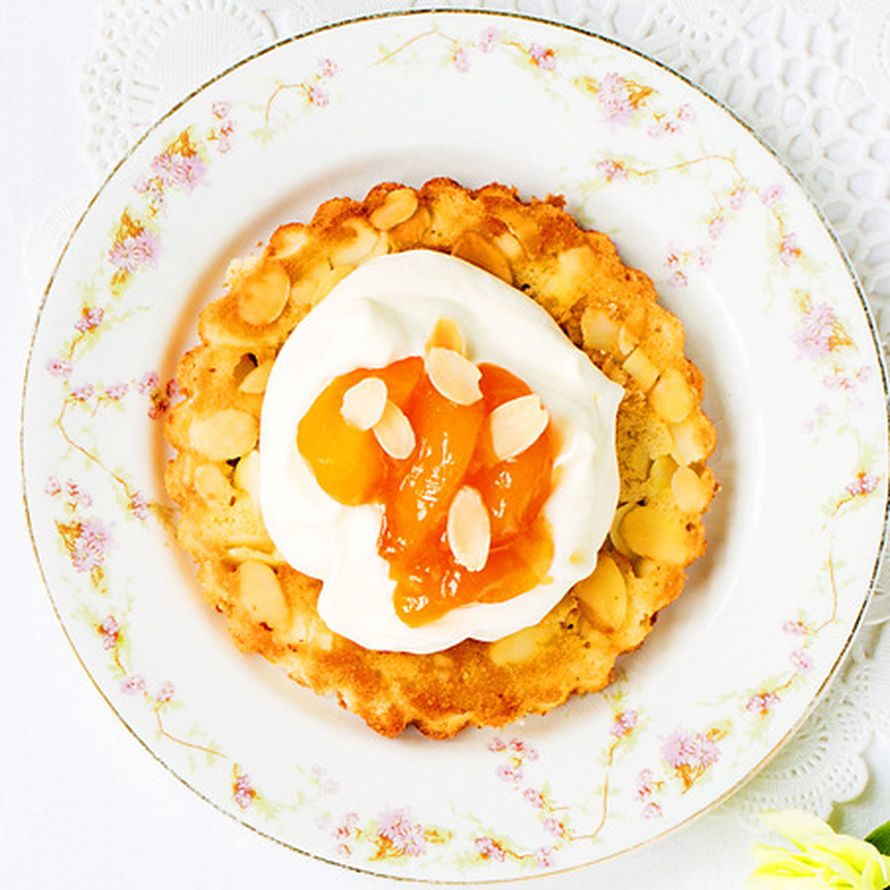 - Tarjoa tortun lisänä kermavaahtoa ja aprikooseja.