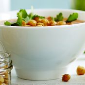 - Sekoita joukkoon tomaattimurska, appelsiinimehu, maapähkinävoi ja kikherneet. Hauduta pataa 20 minuuttia. Lisää vettä, jos padasta tulee liian sakeaa.