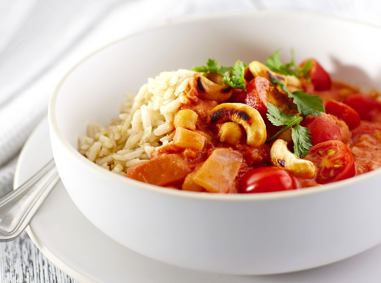 Iltaa kohden on hyvä keventää aterioita. Kikhernepata tarjoillaan täysjyväriisin kanssa.