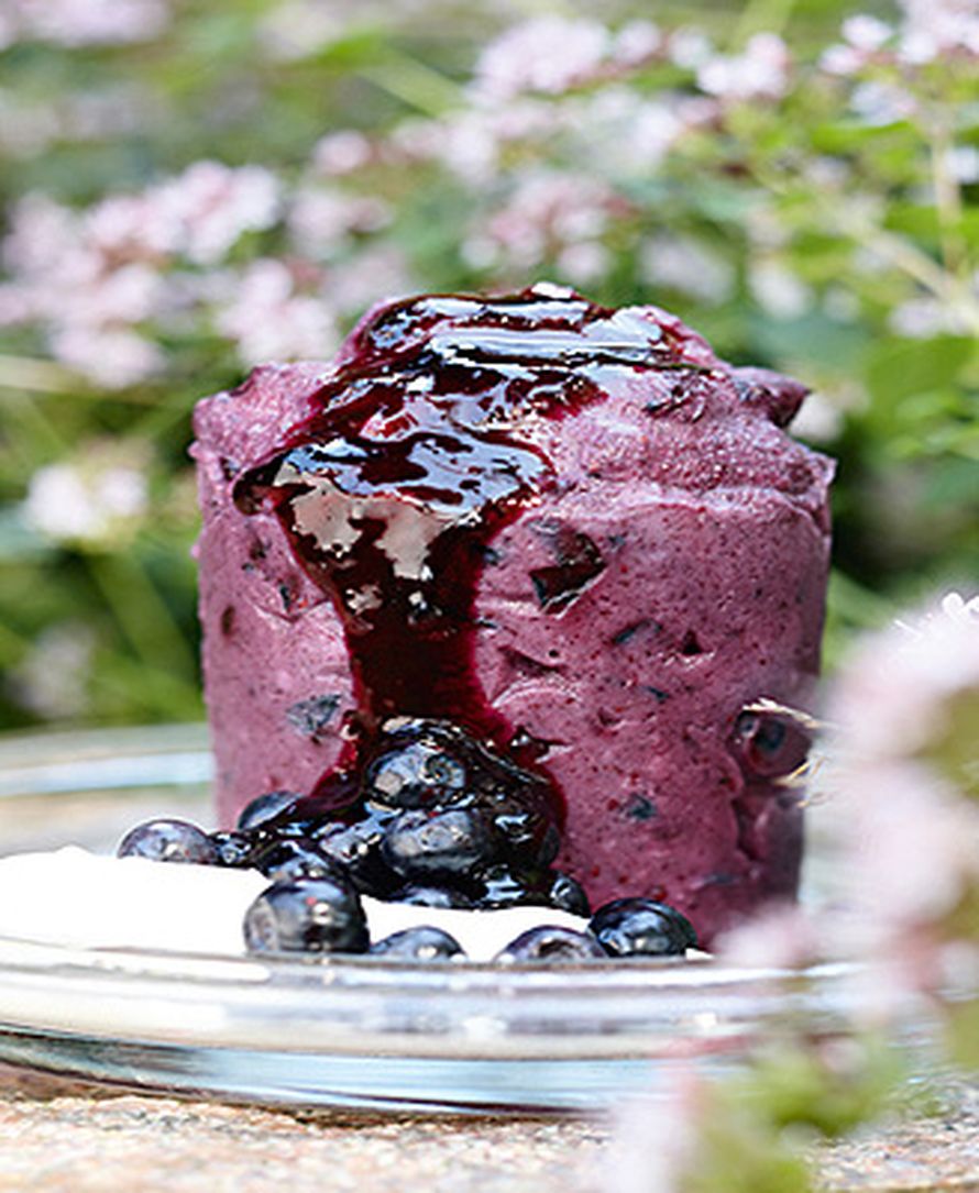 Kasta astiat kuumaan veteen, kumoa jäädykkeet tarjolle ja valuta päälle mustikkasiirappia.