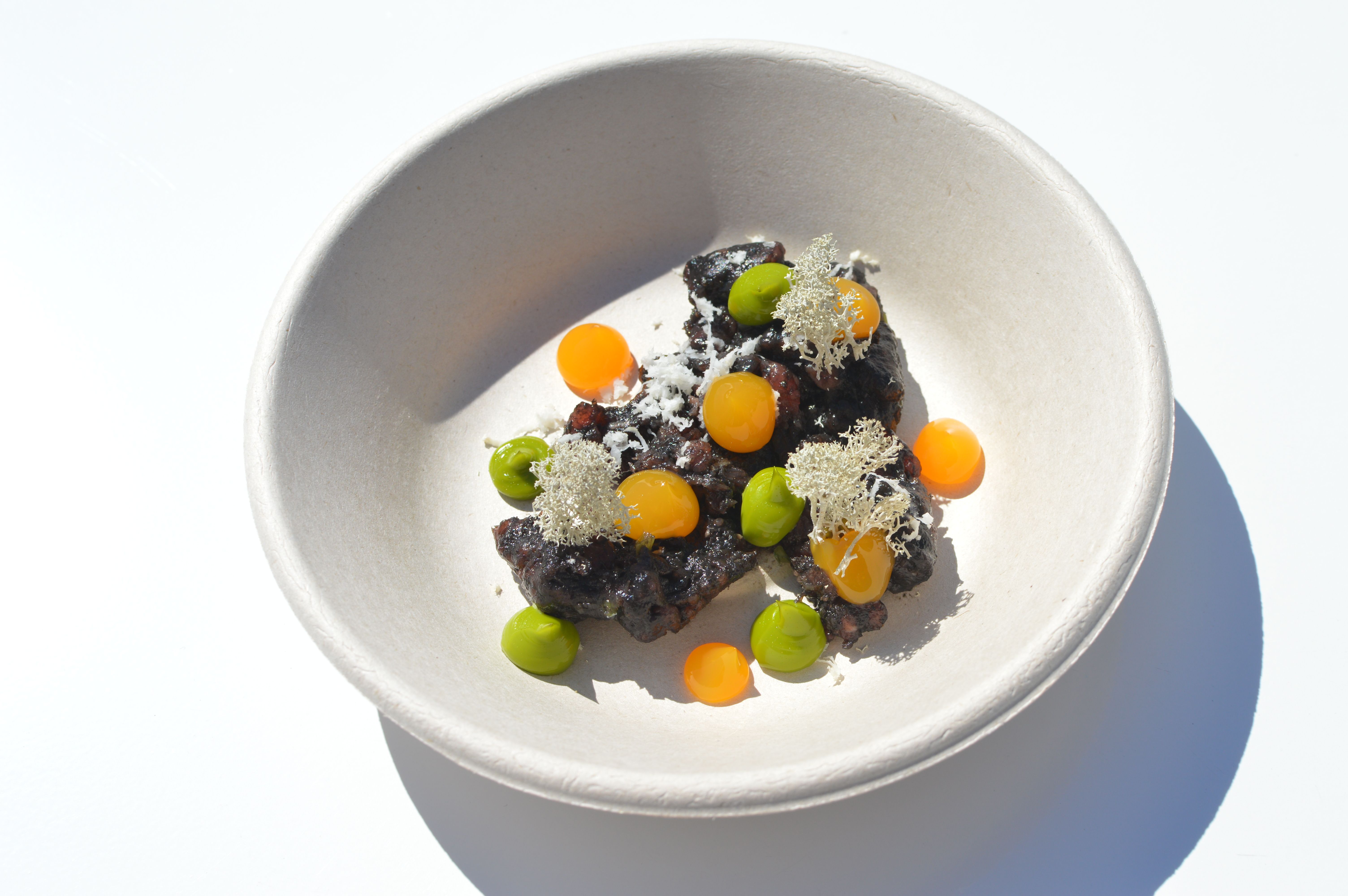 – Höystimme Ahvenanmaan karitsan oliiviöljyllä ja ketunleivillä. Annoksessa on niiden lisäksi munakoisoa, valkosipulia ja aurinkokuivattua tomaattia, kertoo Elina Valoranta, ravintola Tocan ravintoloitsija.