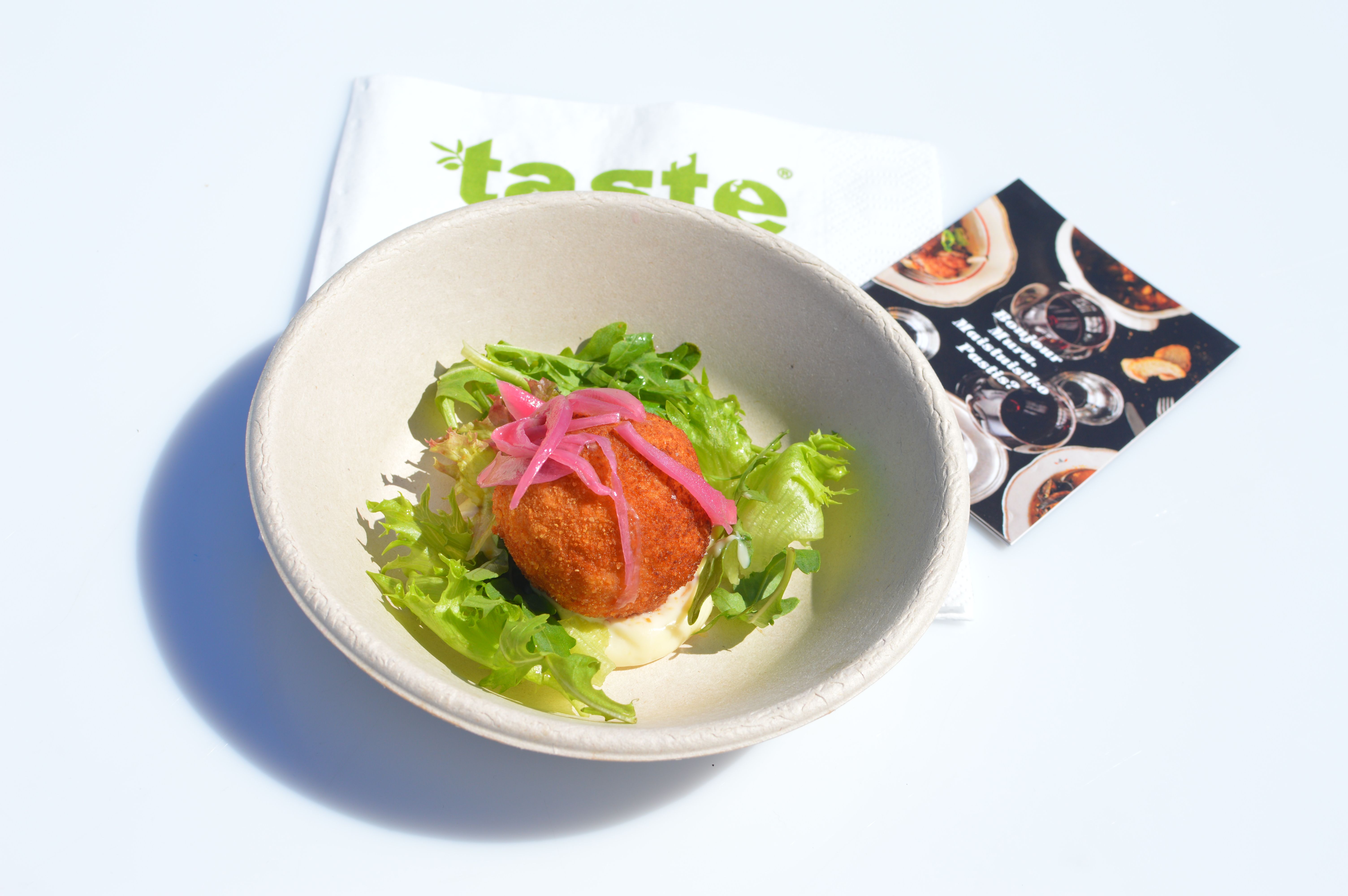 Kanikroketti ja dijonnaise-kastiketta– Taste of Helsinki -tapahtumassa tarjoamamme krokettiannos oli valmistettu ranskalaisesta, ylikypsästä kaninkoivesta. Lihan ympärille muotoiltu pallo oli tehty soseutetusta perunasta. Tämän jälkeen pyörykkä kieriteltiin jauhoissa ja friteerattiin kypsäksi, kertoo Mikko Haakana, ravintola Murun multitasking manager.