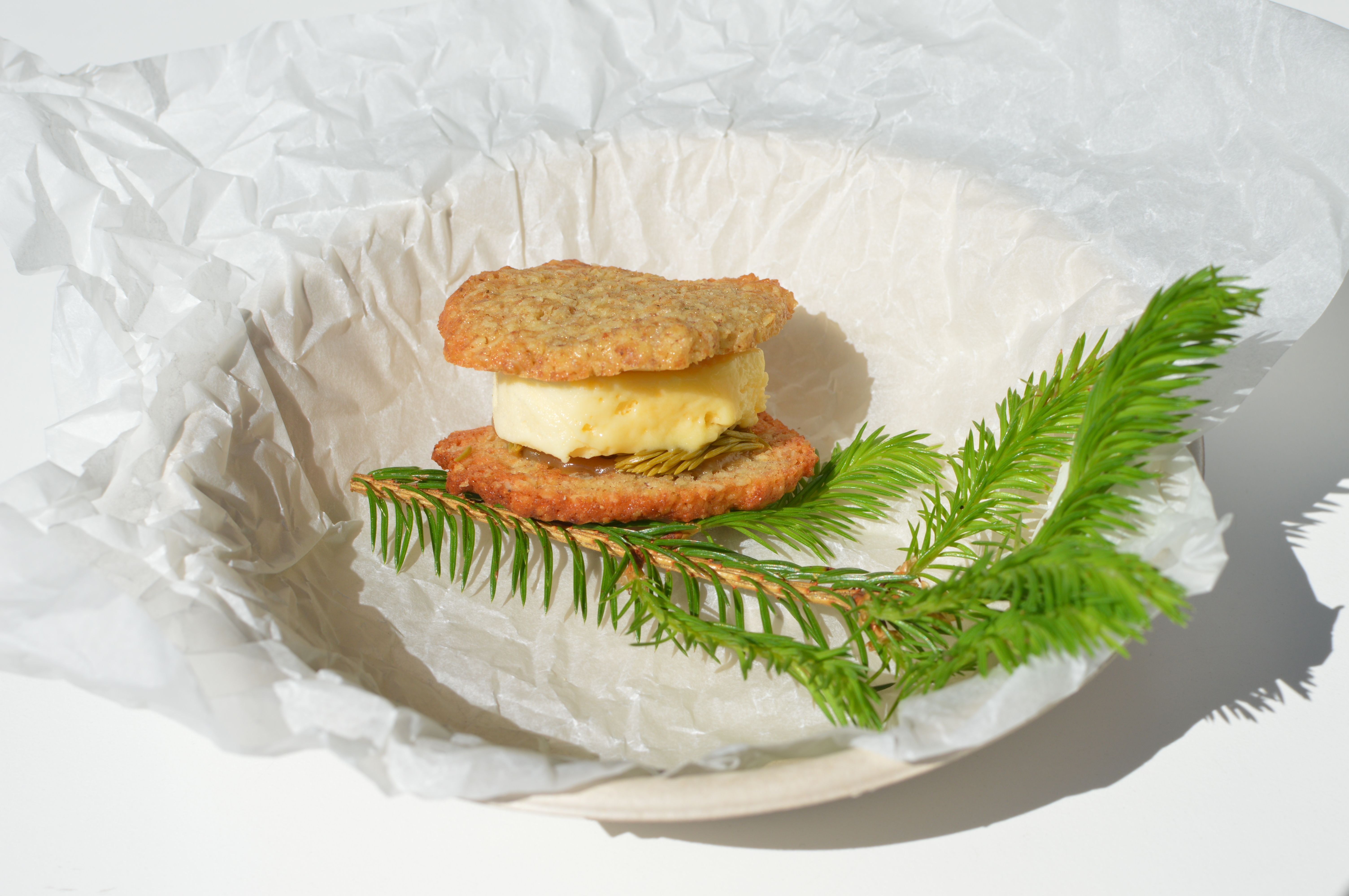 Kuusenkerkkäetikalla maustettua jäädykettä, kuusenkerkkäkinuskia ja ruista