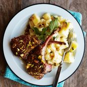 Nappaa tämä lammasohje talteen vaikka ensi pääsiäistä varten. Valkoviinissä maustuvan lihan kylkeen istuu makeahko bataattipyree.