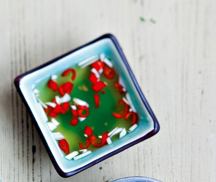 1. Liuota sokeri kuumassa vedessä. Lisää kalakastike ja puristettu limetin mehu.