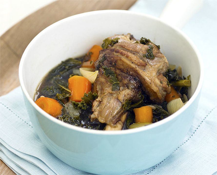 - Kuori ja lohko sipulit ja porkkanat. Silppua lehtikaali. Lisää kasvikset ja olut pataan ja hauduta kannen alla puolisen tuntia.
