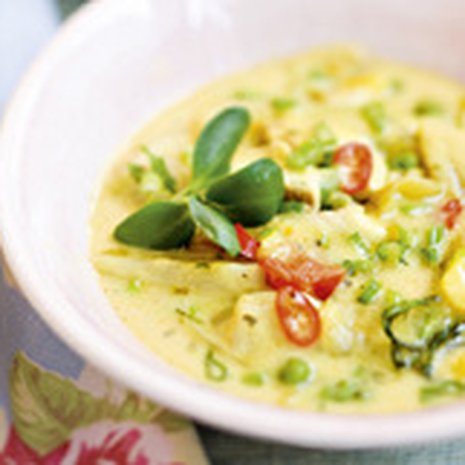 • Kuumenna öljy kattilassa ja lisää sipuli kuullottumaan. Kaada kattilaan vesi ja kasvikset. Hauduta noin 20 minuuttia eli kunnes kukkakaalit ja perunat ovat kypsiä.