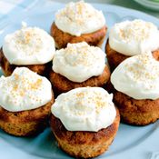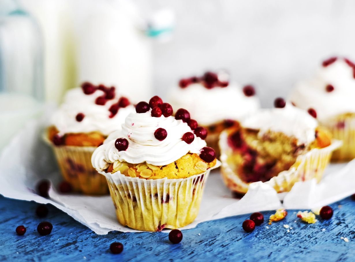 • Kypsennä 200-asteissa uunissa noin 15–20 minuuttia muffinien koosta riippuen. Anna jäähtyä ennen pursotusta.