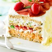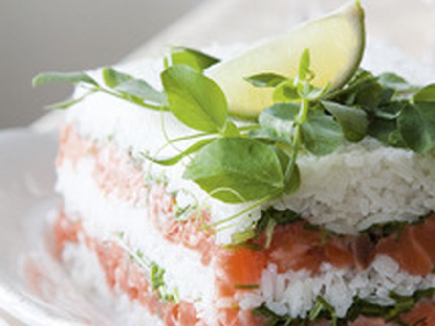 Kokeile perinteisen voileipäkakun sijaan riisipohjaista, juhlavaa kalakakkua.