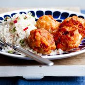 - Painele kakkuvuokaan, pyöreään tai suorakaiteen muotoiseen tiiviisti kerros riisiä, ruohosipulihaketta ja kalaa. Jatka kerroksittain.